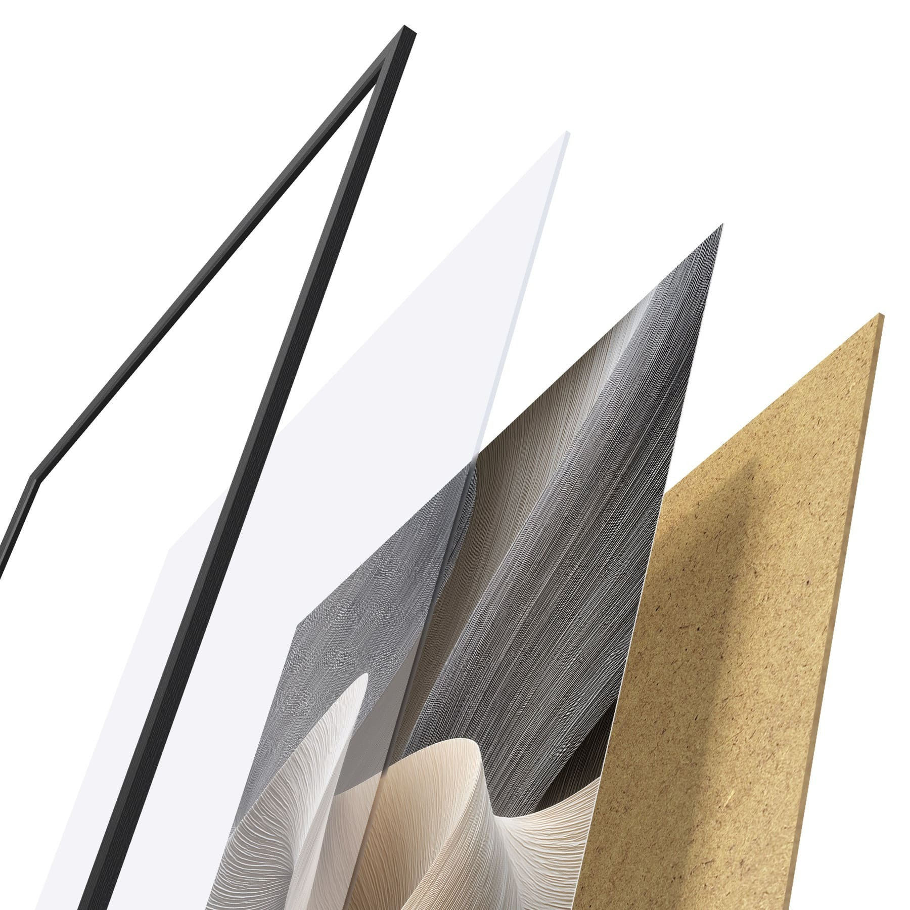 Plakatą sudaro rėmas, pleksiklas, atspausdintas vaizdas ir medžio drožlių plokštės pagrindas. Plakatą galima iš karto pakabinti ant sienos dėl kitoje pusėje esančių laikiklių.
