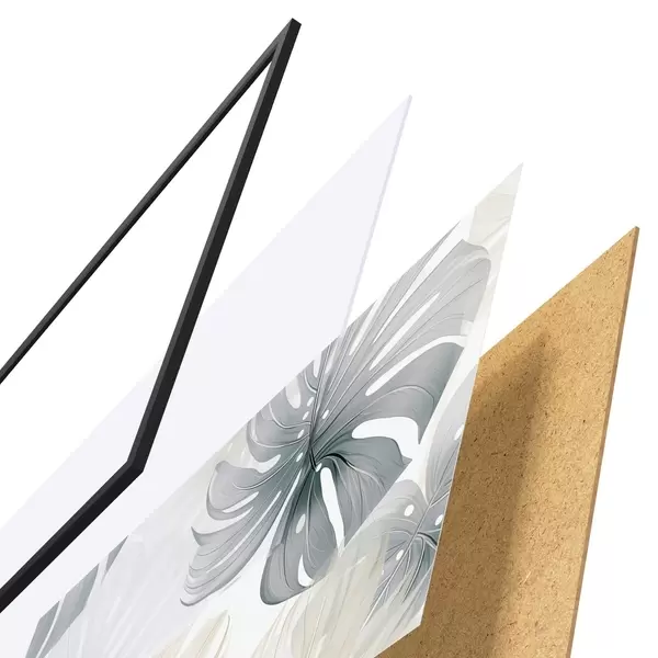 Plakatą sudaro rėmas, pleksiklas, atspausdintas vaizdas ir medžio drožlių plokštės pagrindas. Plakatą galima iš karto pakabinti ant sienos dėl kitoje pusėje esančių laikiklių.