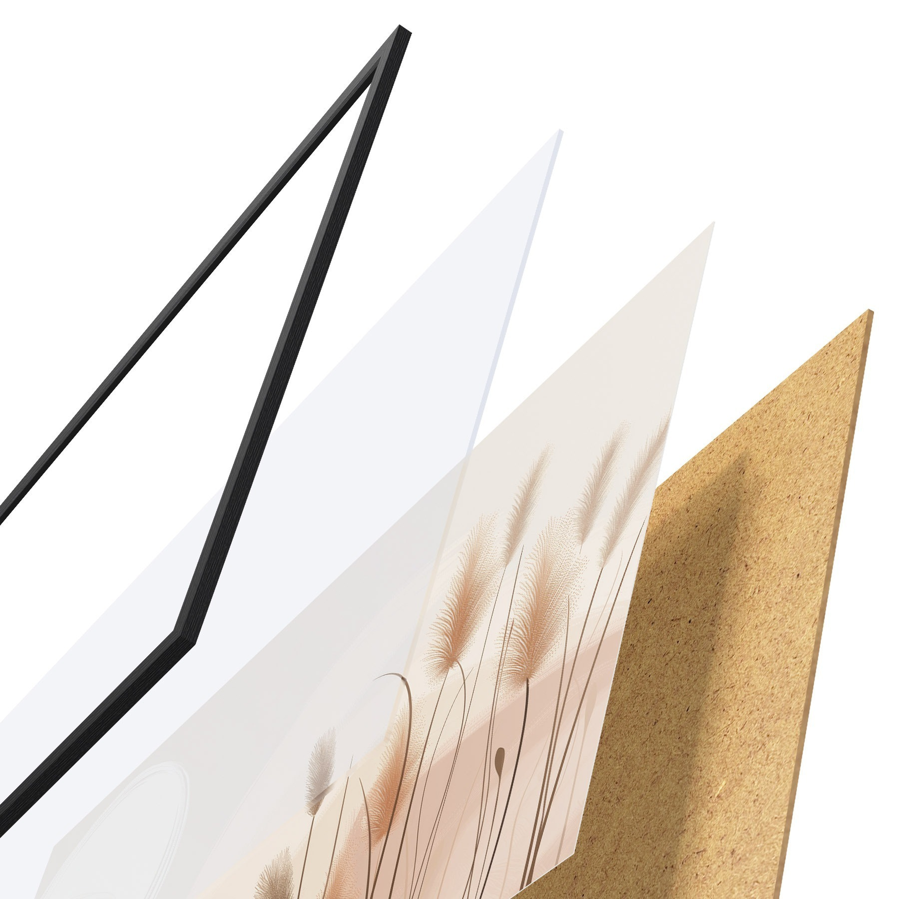 Plakatą sudaro rėmas, pleksiklas, atspausdintas vaizdas ir medžio drožlių plokštės pagrindas. Plakatą galima iš karto pakabinti ant sienos dėl kitoje pusėje esančių laikiklių.