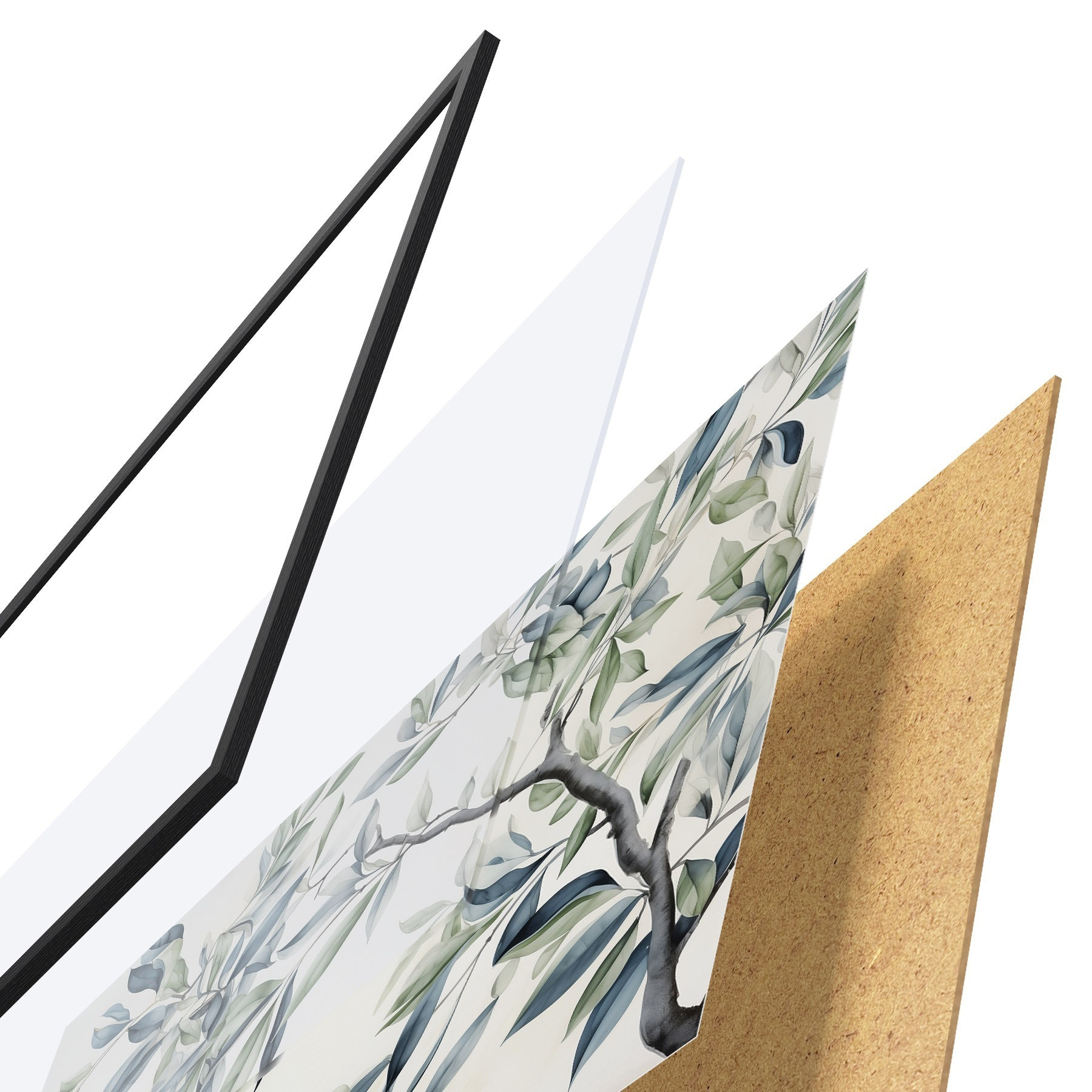 Plakatą sudaro rėmas, pleksiklas, atspausdintas vaizdas ir medžio drožlių plokštės pagrindas. Plakatą galima iš karto pakabinti ant sienos dėl kitoje pusėje esančių laikiklių.
