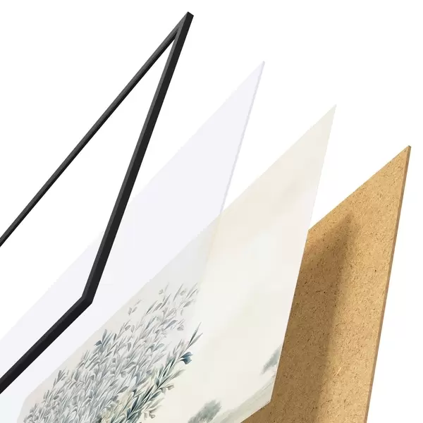 Plakatą sudaro rėmas, pleksiklas, atspausdintas vaizdas ir medžio drožlių plokštės pagrindas. Plakatą galima iš karto pakabinti ant sienos dėl kitoje pusėje esančių laikiklių.
