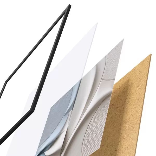 Plakatą sudaro rėmas, pleksiklas, atspausdintas vaizdas ir medžio drožlių plokštės pagrindas. Plakatą galima iš karto pakabinti ant sienos dėl kitoje pusėje esančių laikiklių.