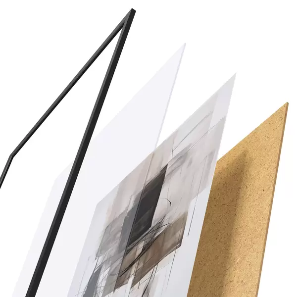Plakatą sudaro rėmas, pleksiklas, atspausdintas vaizdas ir medžio drožlių plokštės pagrindas. Plakatą galima iš karto pakabinti ant sienos dėl kitoje pusėje esančių laikiklių.