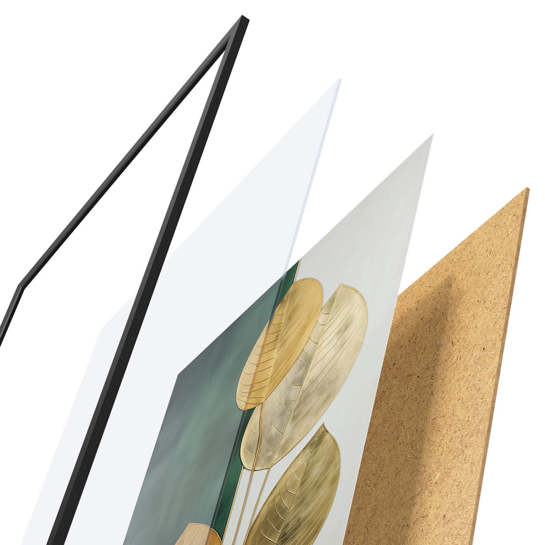Plakatą sudaro rėmas, pleksiklas, atspausdintas vaizdas ir medžio drožlių plokštės pagrindas. Plakatą galima iš karto pakabinti ant sienos dėl kitoje pusėje esančių laikiklių.