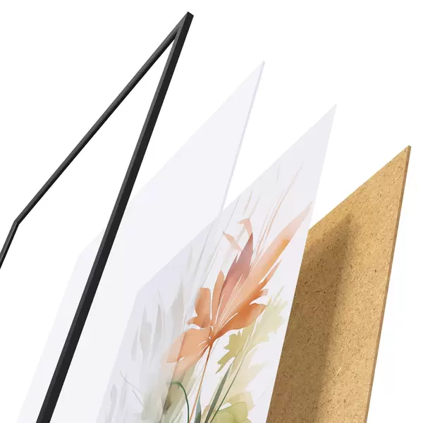 Plakatą sudaro rėmas, pleksiklas, atspausdintas vaizdas ir medžio drožlių plokštės pagrindas. Plakatą galima iš karto pakabinti ant sienos dėl kitoje pusėje esančių laikiklių.
