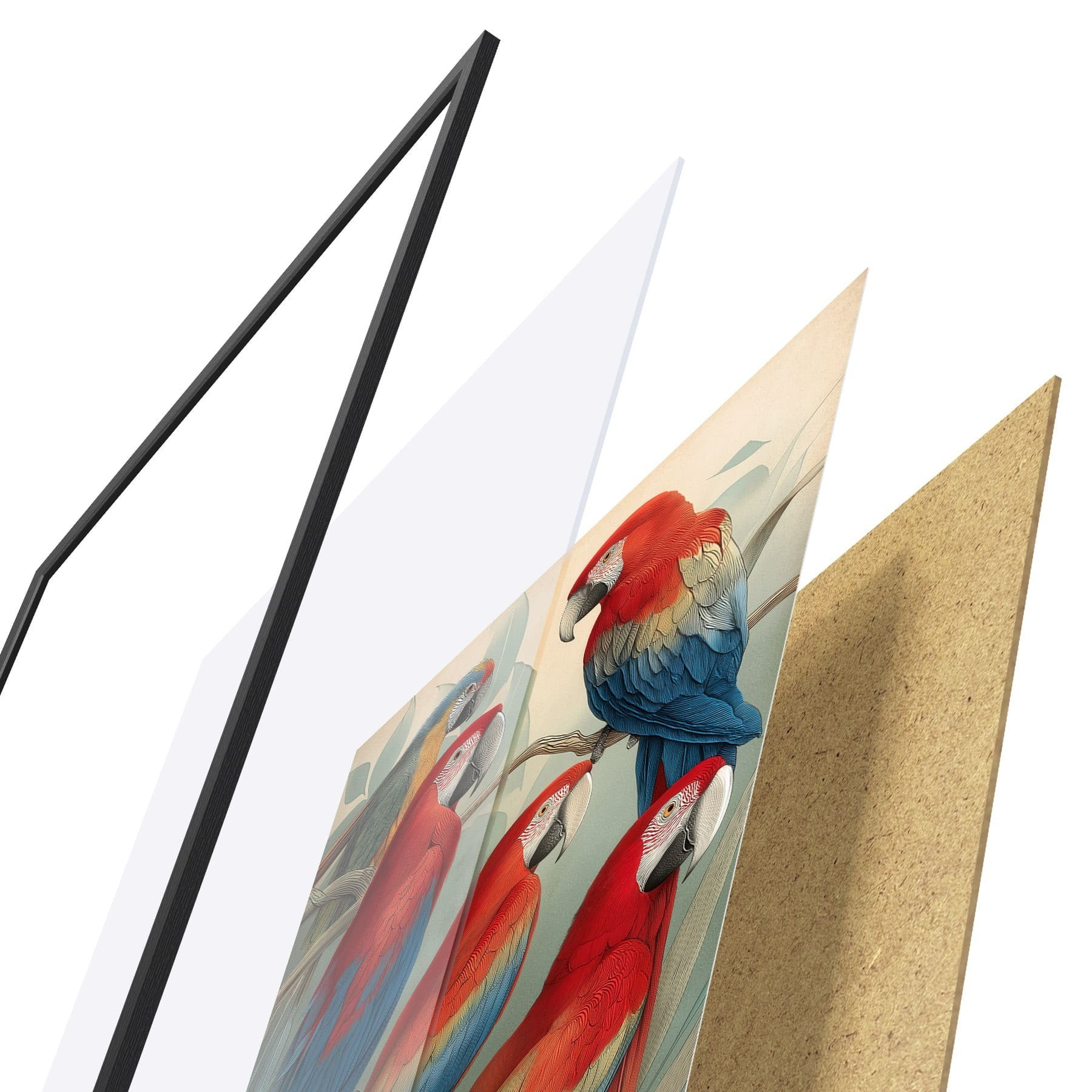 Plakatą sudaro rėmas, pleksiklas, atspausdintas vaizdas ir medžio drožlių plokštės pagrindas. Plakatą galima iš karto pakabinti ant sienos dėl kitoje pusėje esančių laikiklių.