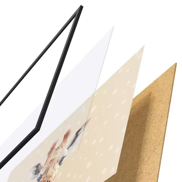 Plakatą sudaro rėmas, pleksiklas, atspausdintas vaizdas ir medžio drožlių plokštės pagrindas. Plakatą galima iš karto pakabinti ant sienos dėl kitoje pusėje esančių laikiklių.
