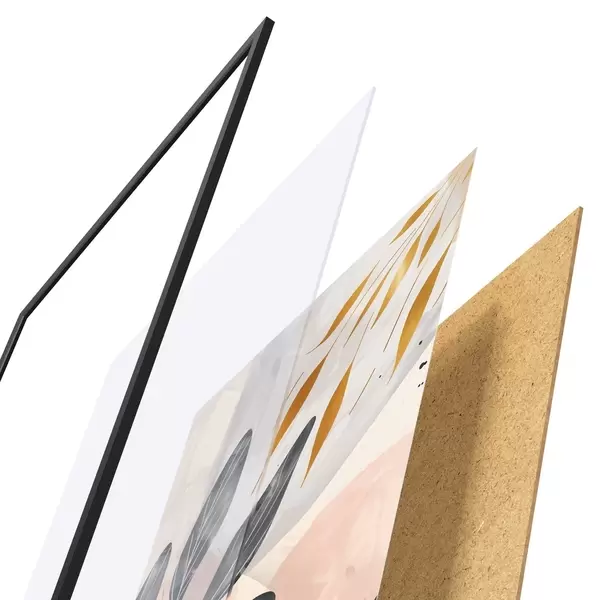 Plakatą sudaro rėmas, pleksiklas, atspausdintas vaizdas ir medžio drožlių plokštės pagrindas. Plakatą galima iš karto pakabinti ant sienos dėl kitoje pusėje esančių laikiklių.