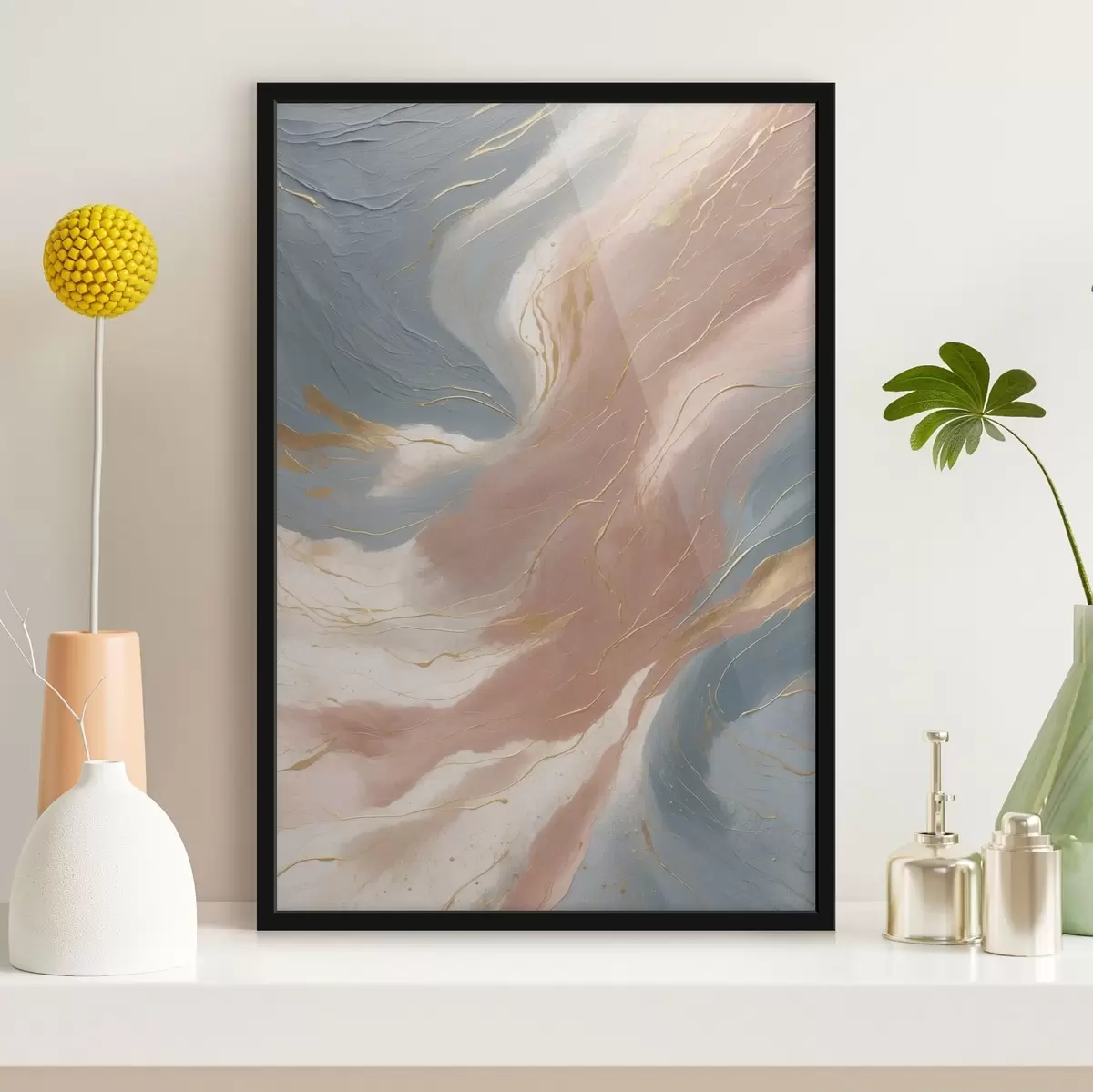 Plakatas Abstrakčios bangos švelniomis mėlynomis ir rožinėmis spalvomis Ne f47753