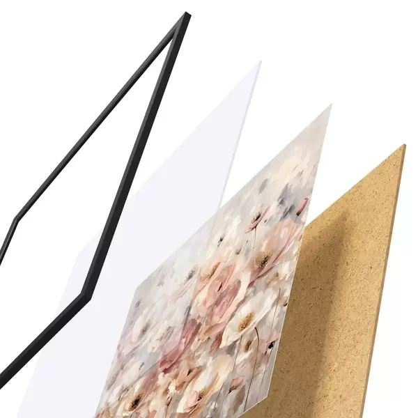 Plakatą sudaro rėmas, pleksiklas, atspausdintas vaizdas ir medžio drožlių plokštės pagrindas. Plakatą galima iš karto pakabinti ant sienos dėl kitoje pusėje esančių laikiklių.