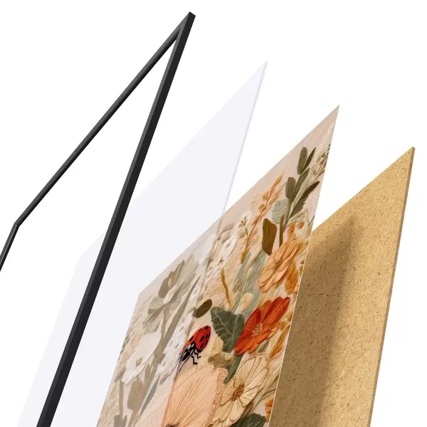 Plakatą sudaro rėmas, pleksiklas, atspausdintas vaizdas ir medžio drožlių plokštės pagrindas. Plakatą galima iš karto pakabinti ant sienos dėl kitoje pusėje esančių laikiklių.