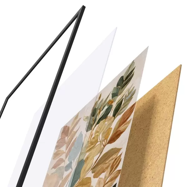 Plakatą sudaro rėmas, pleksiklas, atspausdintas vaizdas ir medžio drožlių plokštės pagrindas. Plakatą galima iš karto pakabinti ant sienos dėl kitoje pusėje esančių laikiklių.