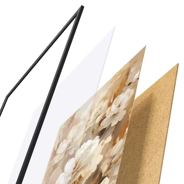 Plakatą sudaro rėmas, pleksiklas, atspausdintas vaizdas ir medžio drožlių plokštės pagrindas. Plakatą galima iš karto pakabinti ant sienos dėl kitoje pusėje esančių laikiklių.