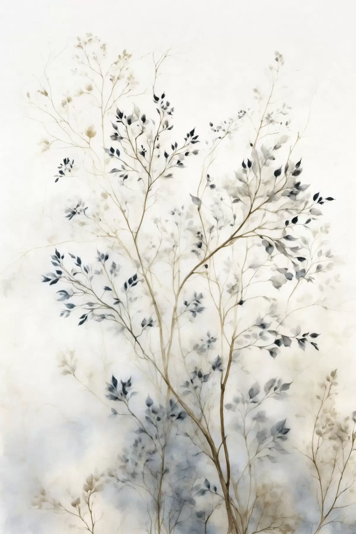 Plakatas Subtilūs šakeliukai su mažais lapais ant šviesaus fono Ne f47763