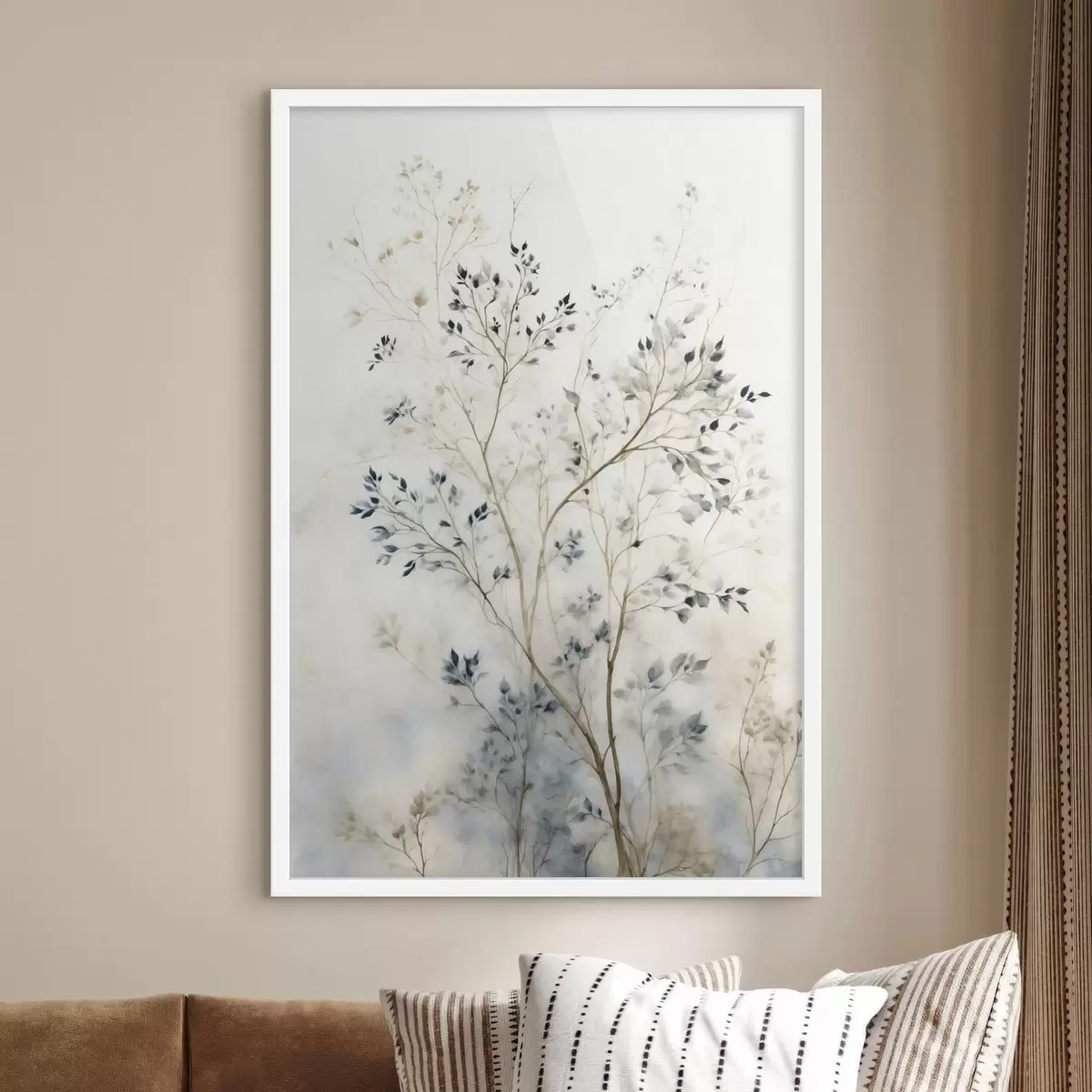 Plakatas Subtilūs šakeliukai su mažais lapais ant šviesaus fono f47763
