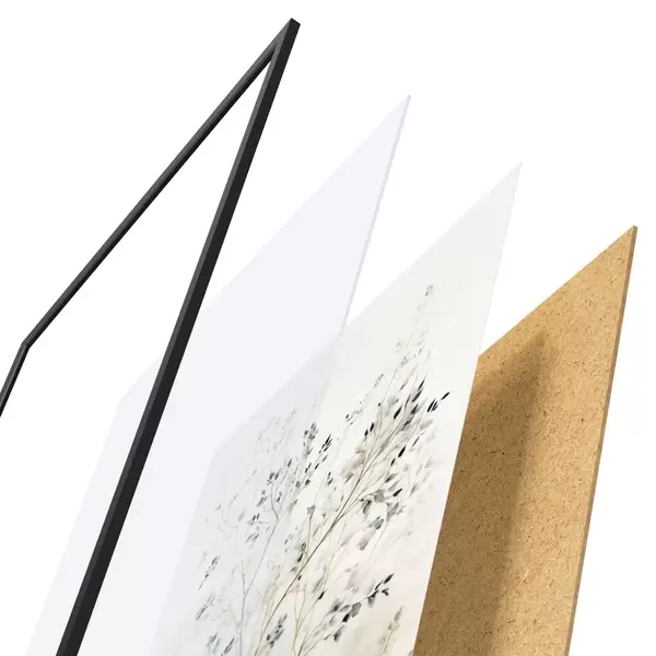 Plakatą sudaro rėmas, pleksiklas, atspausdintas vaizdas ir medžio drožlių plokštės pagrindas. Plakatą galima iš karto pakabinti ant sienos dėl kitoje pusėje esančių laikiklių.
