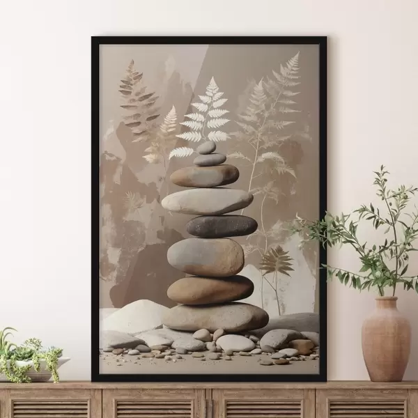 Plakatas Lygaus akmens krūva su botaniniu fonu f47764