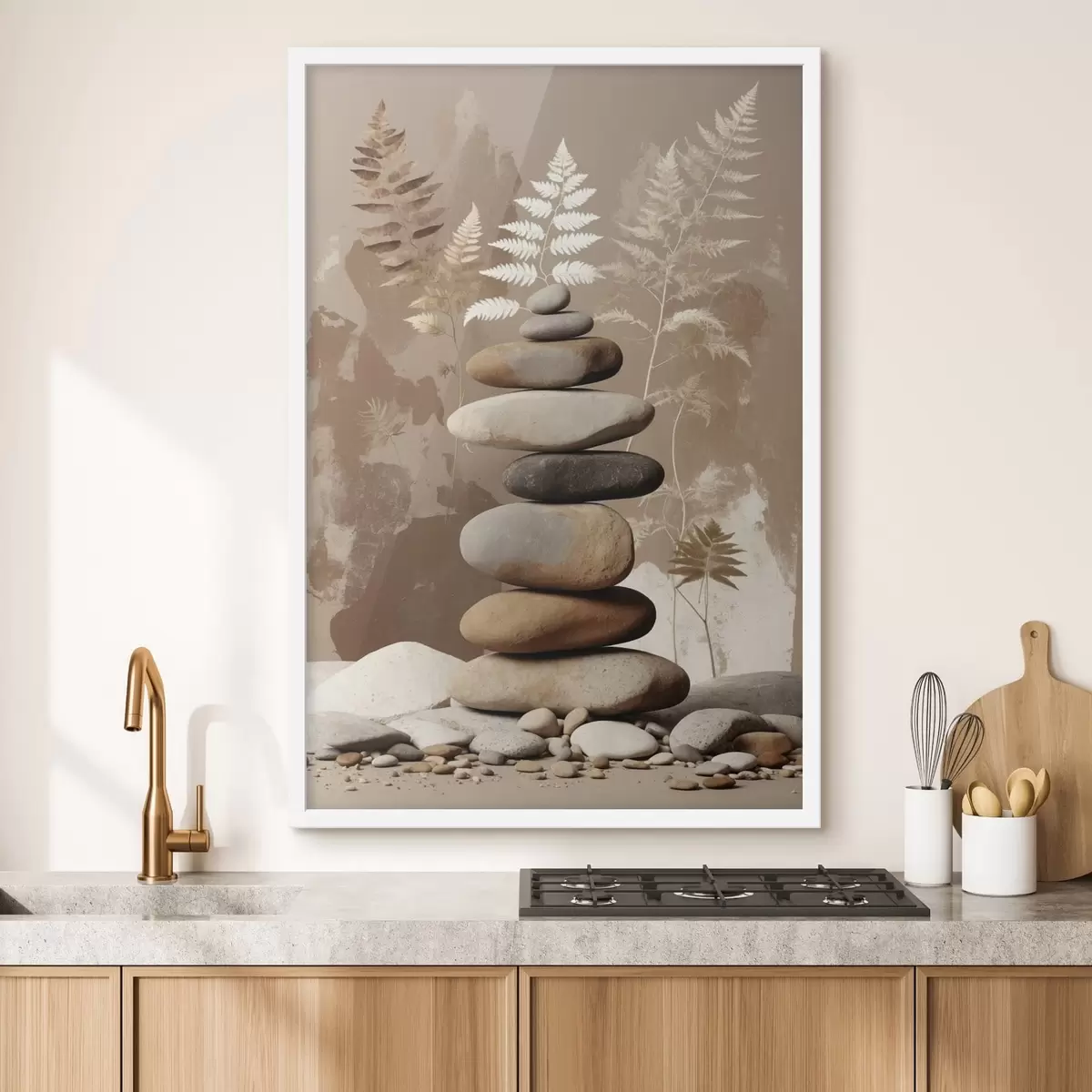 Plakatas Lygaus akmens krūva su botaniniu fonu Ne f47764