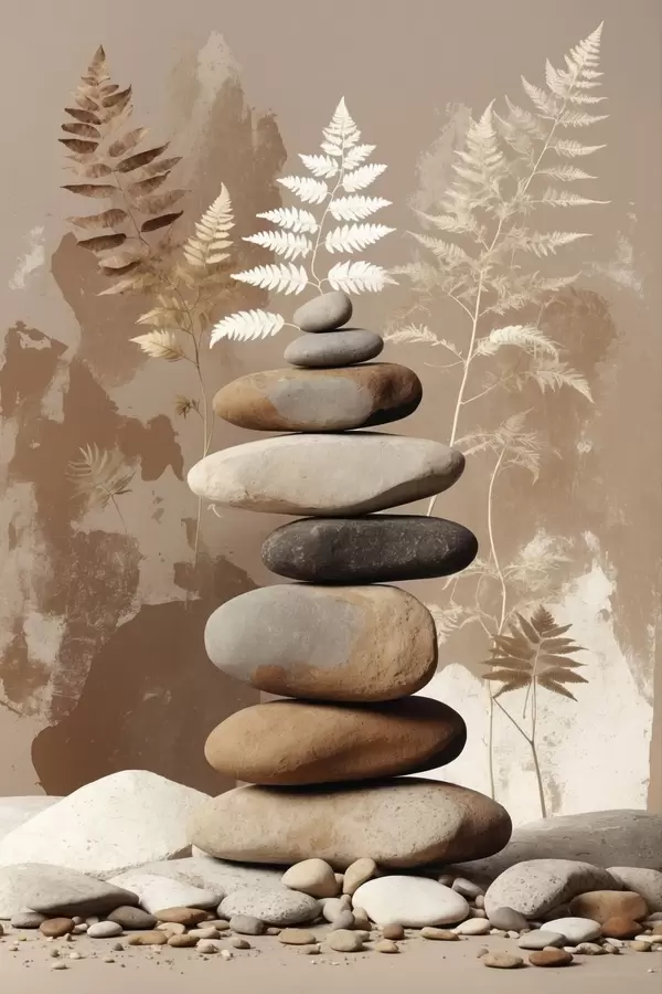 Plakatas Lygaus akmens krūva su botaniniu fonu f47764