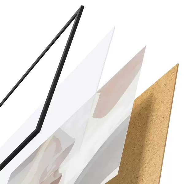 Plakatą sudaro rėmas, pleksiklas, atspausdintas vaizdas ir medžio drožlių plokštės pagrindas. Plakatą galima iš karto pakabinti ant sienos dėl kitoje pusėje esančių laikiklių.