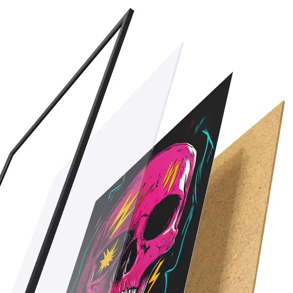 Plakatą sudaro rėmas, pleksiklas, atspausdintas vaizdas ir medžio drožlių plokštės pagrindas. Plakatą galima iš karto pakabinti ant sienos dėl kitoje pusėje esančių laikiklių.