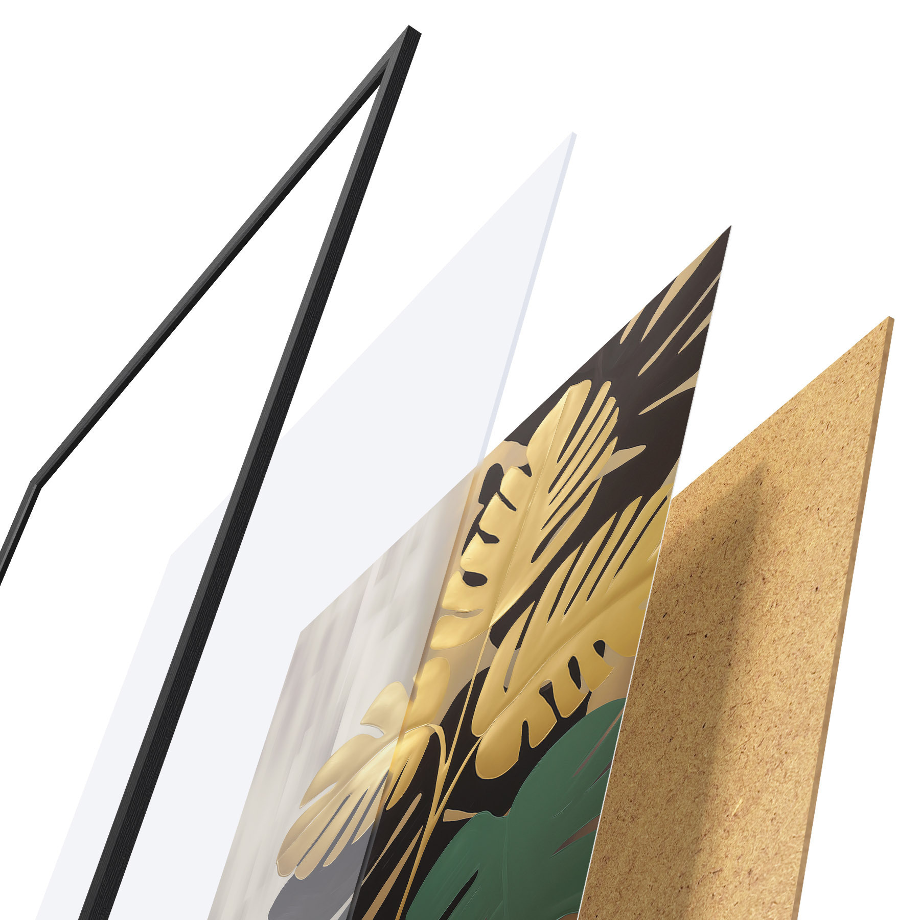 Plakatą sudaro rėmas, pleksiklas, atspausdintas vaizdas ir medžio drožlių plokštės pagrindas. Plakatą galima iš karto pakabinti ant sienos dėl kitoje pusėje esančių laikiklių.