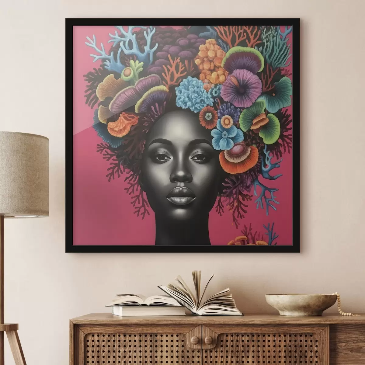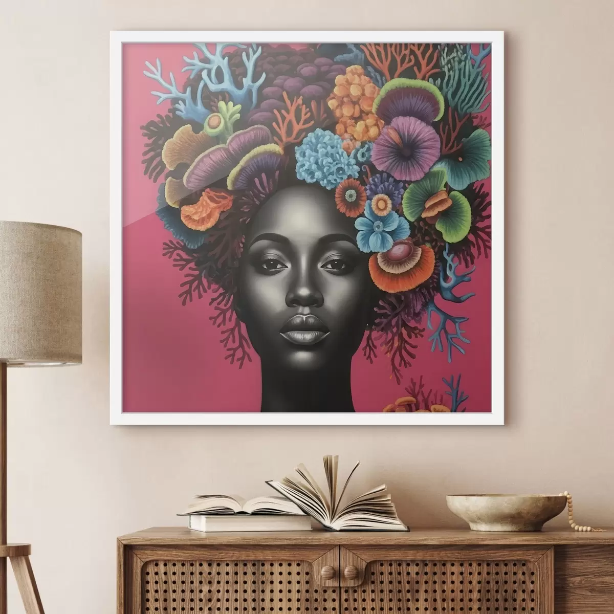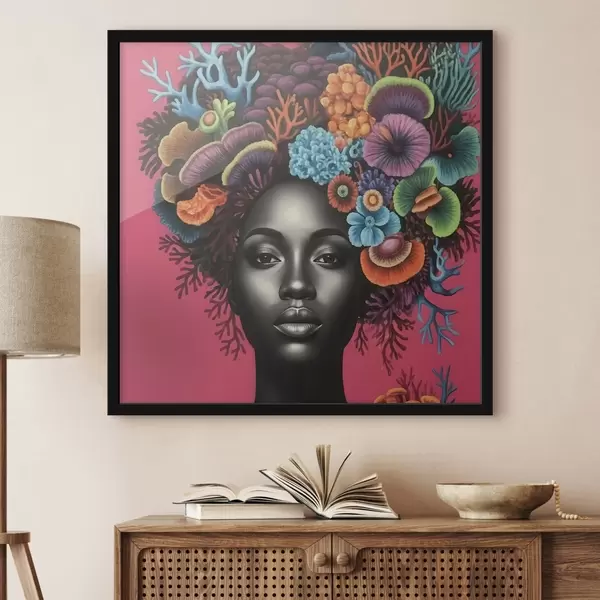 Plakatas Psichodelinis moters su grybais portretas Ne f47786