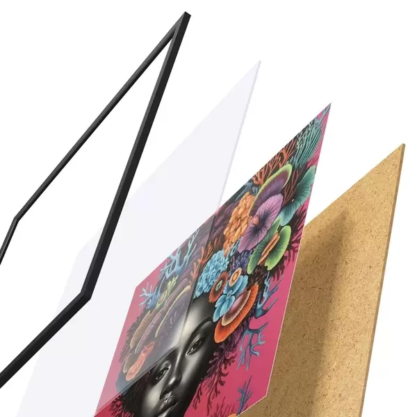 Plakatą sudaro rėmas, pleksiklas, atspausdintas vaizdas ir medžio drožlių plokštės pagrindas. Plakatą galima iš karto pakabinti ant sienos dėl kitoje pusėje esančių laikiklių.