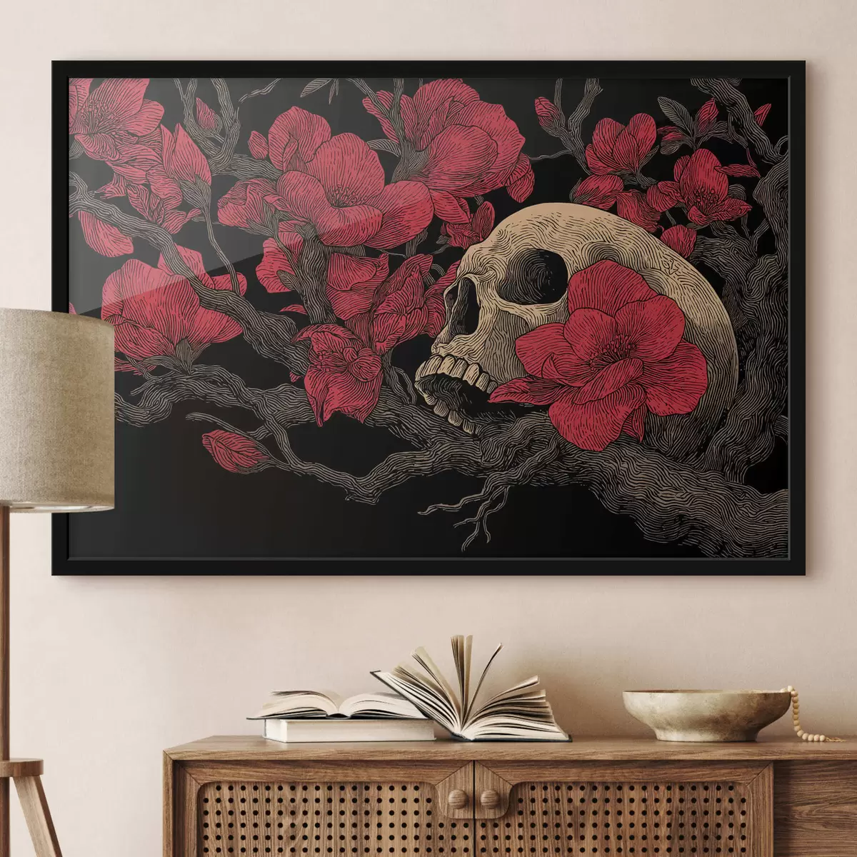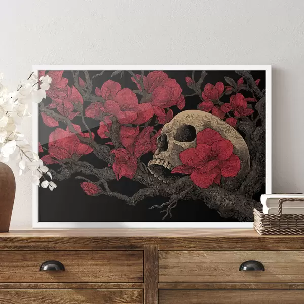 Plakatas Kaukolė su gėlėmis f47797