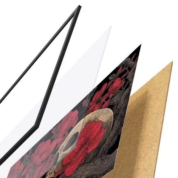 Plakatą sudaro rėmas, pleksiklas, atspausdintas vaizdas ir medžio drožlių plokštės pagrindas. Plakatą galima iš karto pakabinti ant sienos dėl kitoje pusėje esančių laikiklių.