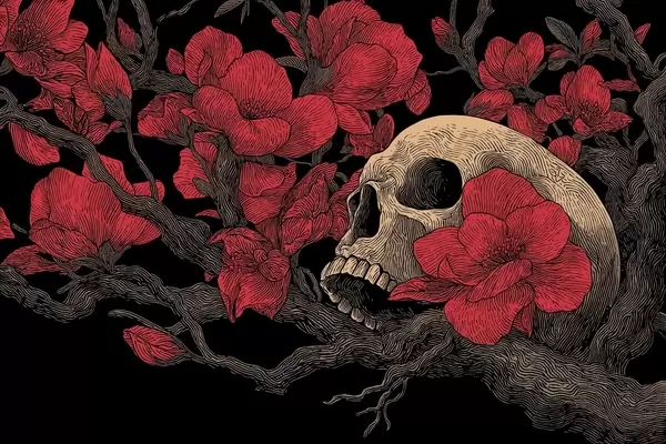 Plakatas Kaukolė su gėlėmis f47797