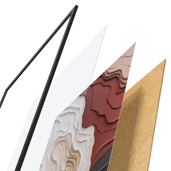 Plakatą sudaro rėmas, pleksiklas, atspausdintas vaizdas ir medžio drožlių plokštės pagrindas. Plakatą galima iš karto pakabinti ant sienos dėl kitoje pusėje esančių laikiklių.