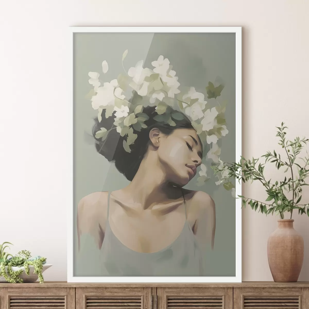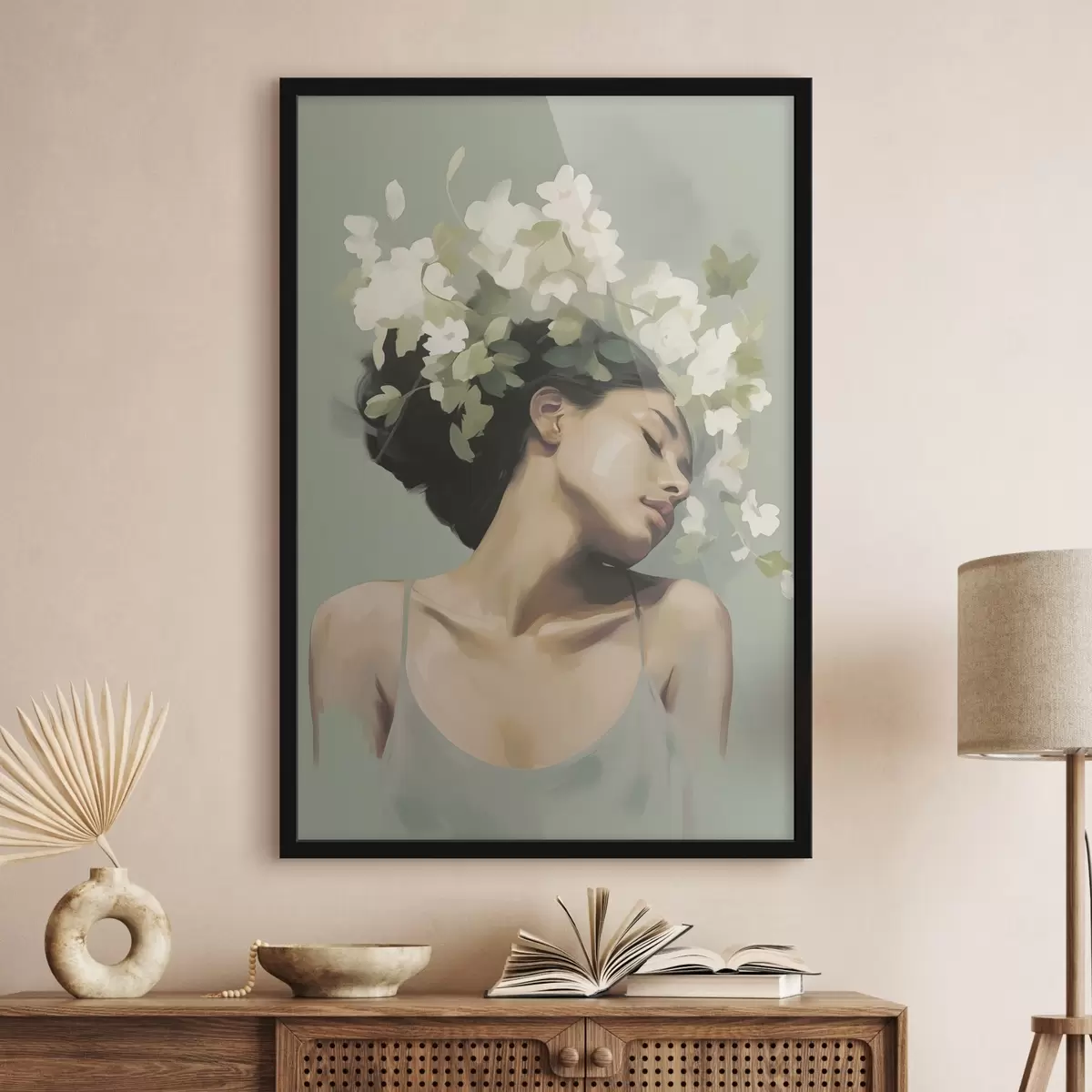 Plakatas Mergina su gėlių vainiku f47806