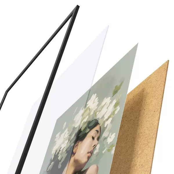 Plakatą sudaro rėmas, pleksiklas, atspausdintas vaizdas ir medžio drožlių plokštės pagrindas. Plakatą galima iš karto pakabinti ant sienos dėl kitoje pusėje esančių laikiklių.