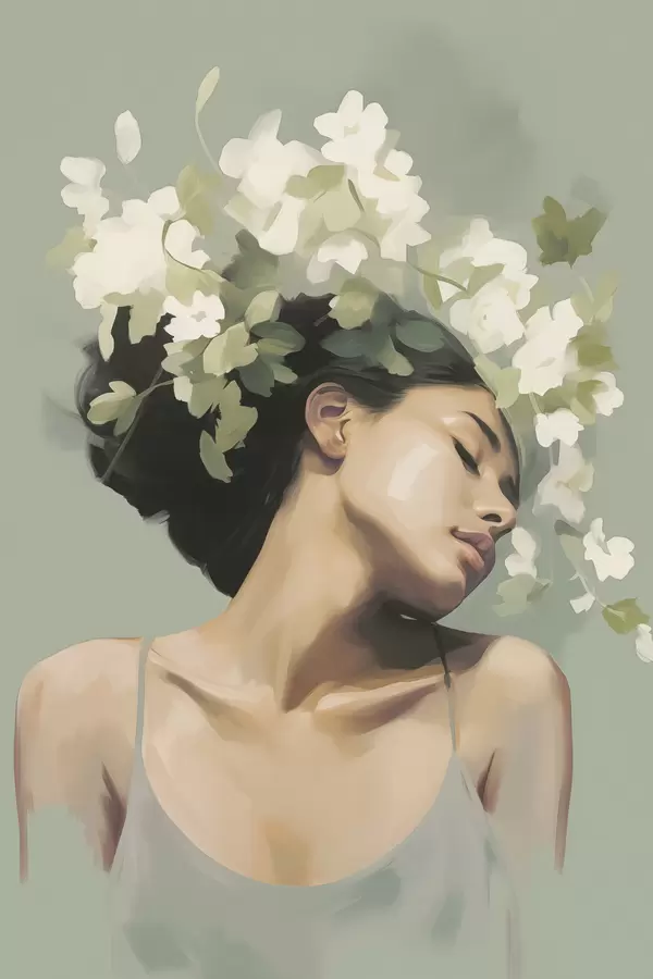 Plakatas Mergina su gėlių vainiku f47806