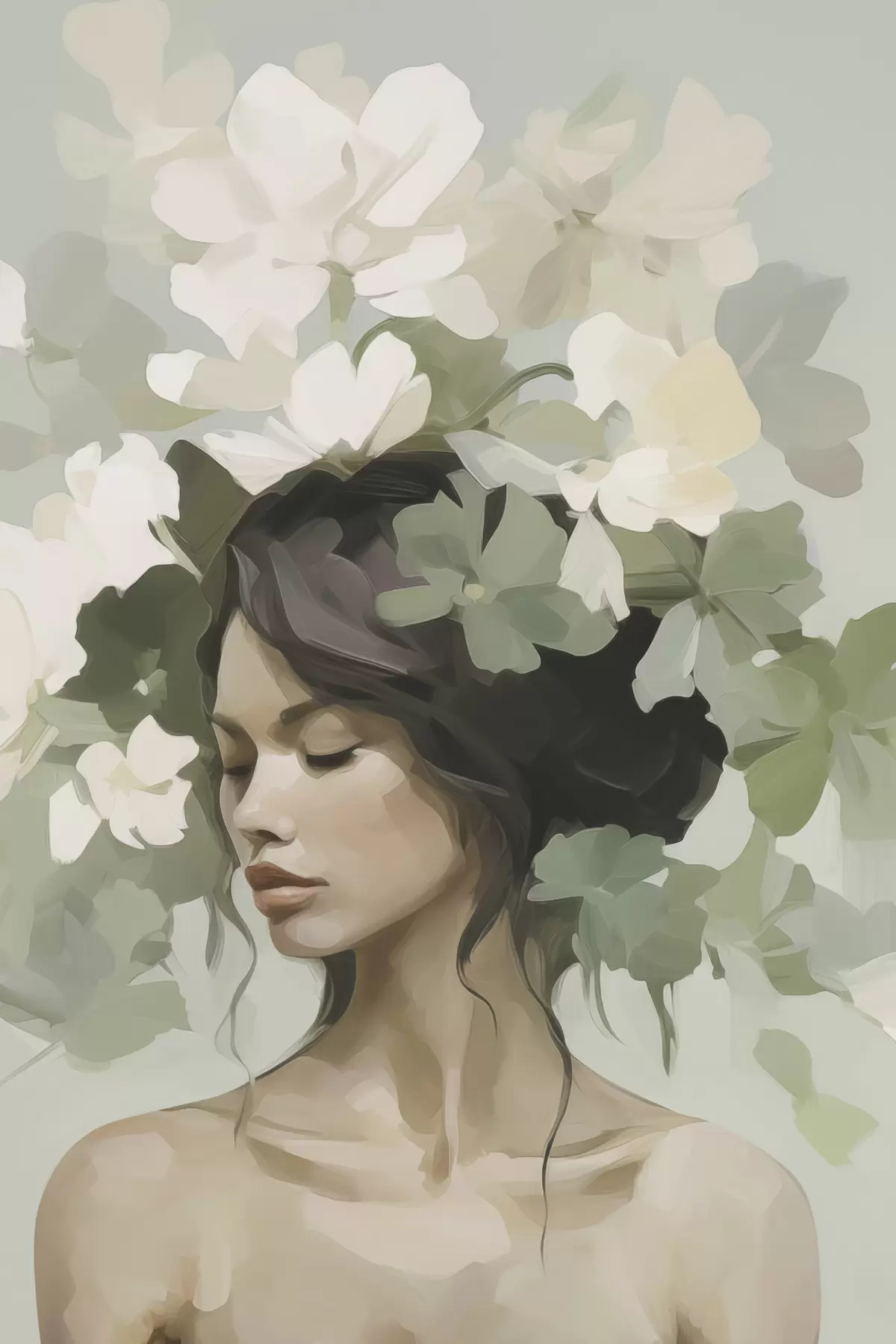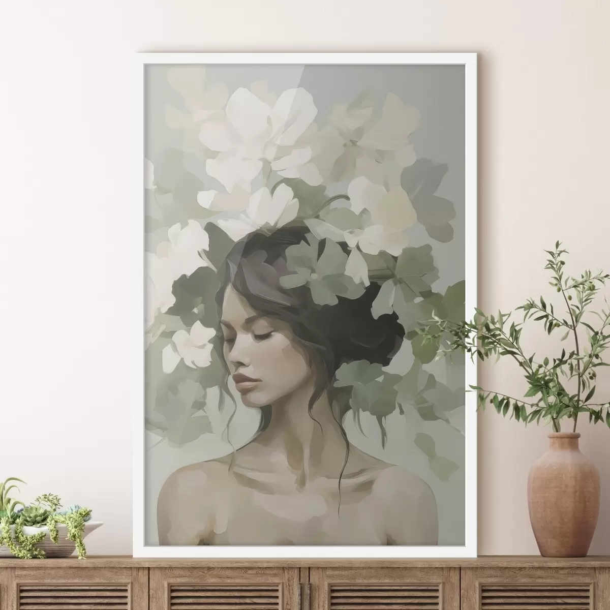Plakatas Merginos su gėlių vainiku portretas f47807