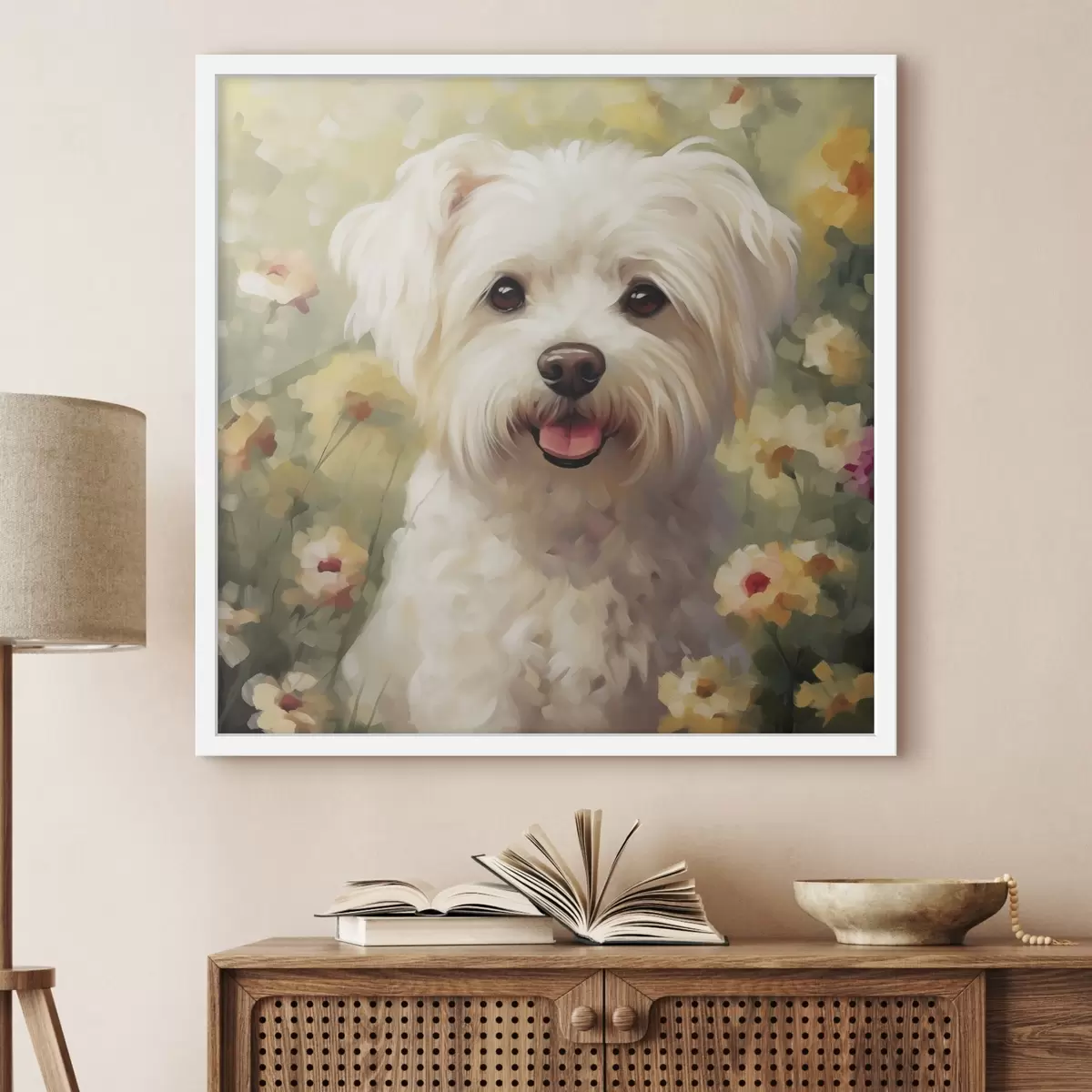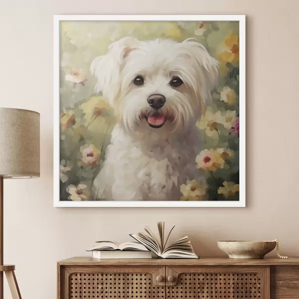 Plakatas Mažasis šunelis gėlėse f47811