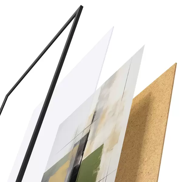 Plakatą sudaro rėmas, pleksiklas, atspausdintas vaizdas ir medžio drožlių plokštės pagrindas. Plakatą galima iš karto pakabinti ant sienos dėl kitoje pusėje esančių laikiklių.