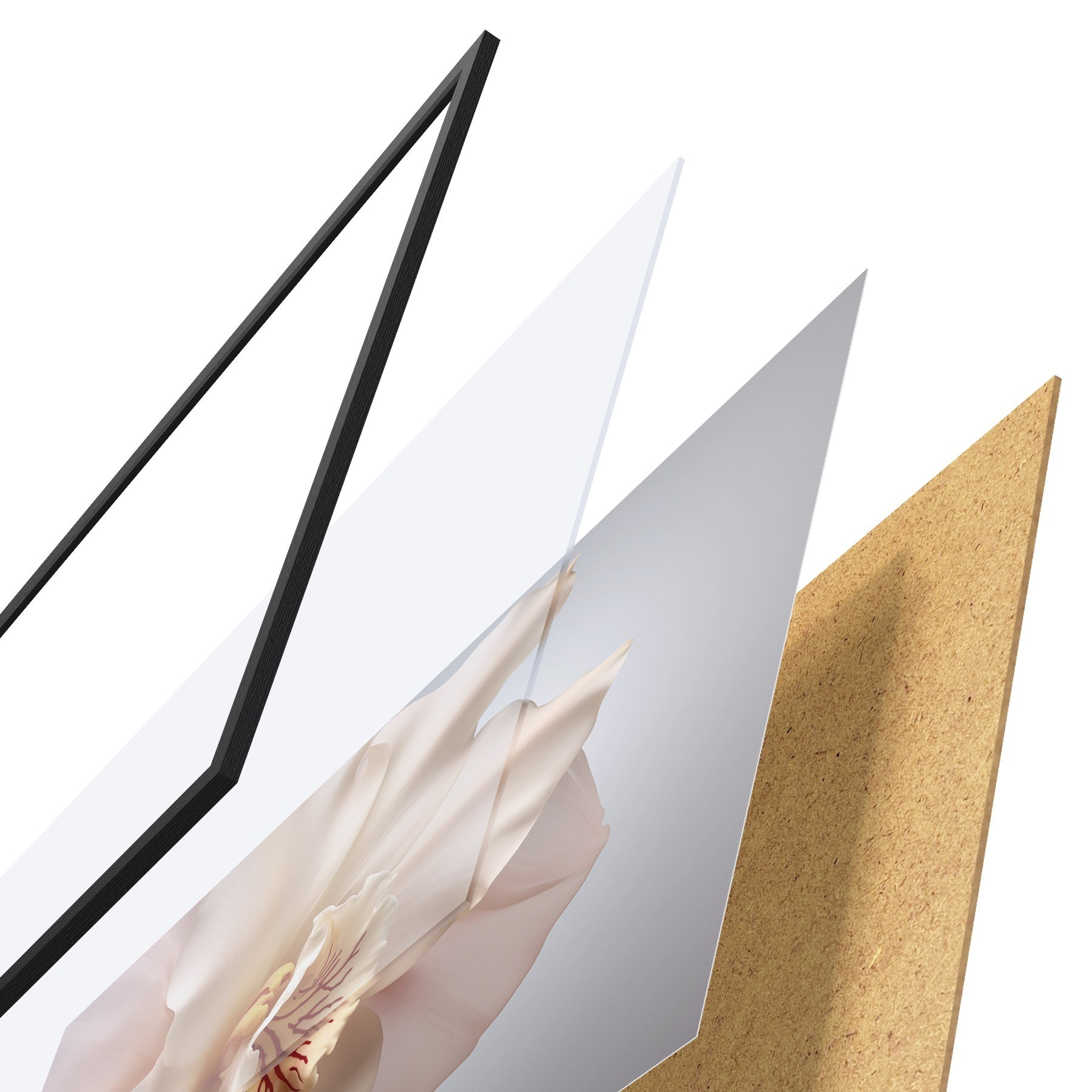 Plakatą sudaro rėmas, pleksiklas, atspausdintas vaizdas ir medžio drožlių plokštės pagrindas. Plakatą galima iš karto pakabinti ant sienos dėl kitoje pusėje esančių laikiklių.