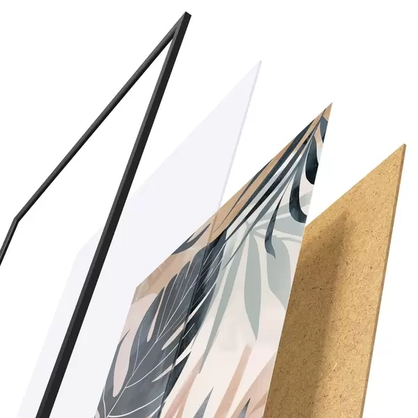 Plakatą sudaro rėmas, pleksiklas, atspausdintas vaizdas ir medžio drožlių plokštės pagrindas. Plakatą galima iš karto pakabinti ant sienos dėl kitoje pusėje esančių laikiklių.