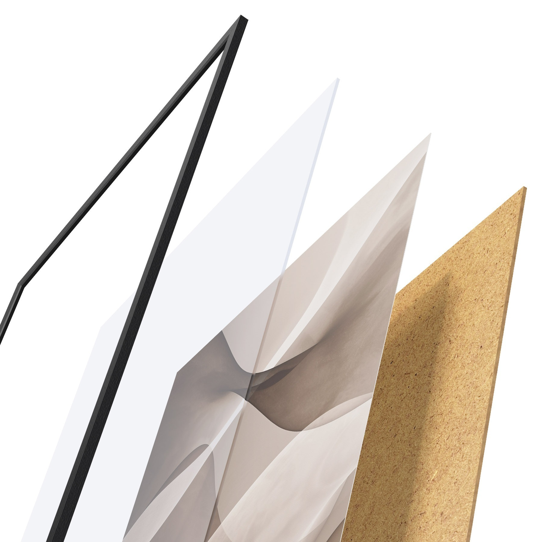 Plakatą sudaro rėmas, pleksiklas, atspausdintas vaizdas ir medžio drožlių plokštės pagrindas. Plakatą galima iš karto pakabinti ant sienos dėl kitoje pusėje esančių laikiklių.