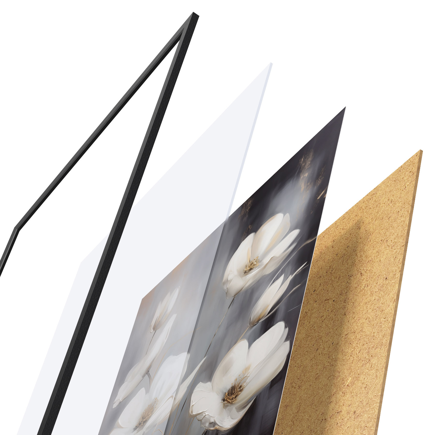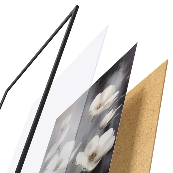 Plakatą sudaro rėmas, pleksiklas, atspausdintas vaizdas ir medžio drožlių plokštės pagrindas. Plakatą galima iš karto pakabinti ant sienos dėl kitoje pusėje esančių laikiklių.