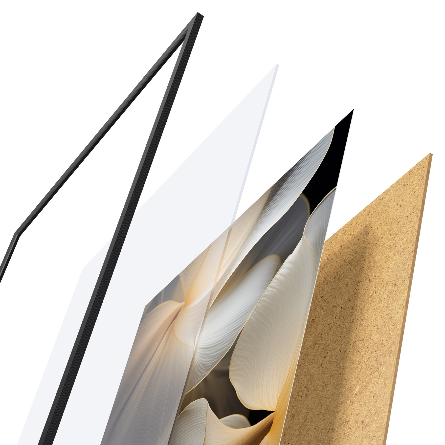 Plakatą sudaro rėmas, pleksiklas, atspausdintas vaizdas ir medžio drožlių plokštės pagrindas. Plakatą galima iš karto pakabinti ant sienos dėl kitoje pusėje esančių laikiklių.