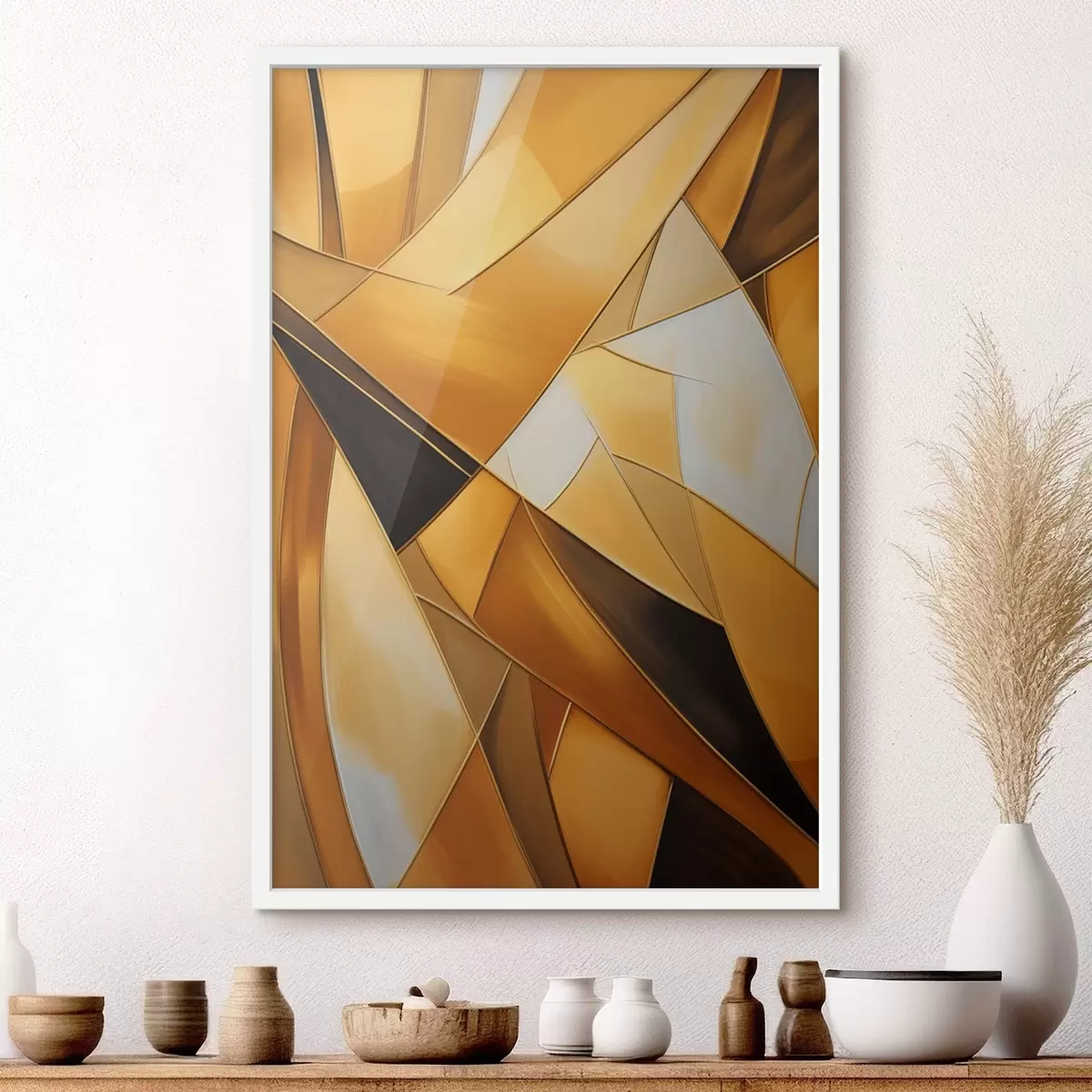 Plakatas Abstrakčios geometrinės formos oranžinių, rudų ir baltų atspalvių su plonais kontūrais ant tekstūruoto fono f47863