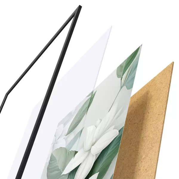 Plakatą sudaro rėmas, pleksiklas, atspausdintas vaizdas ir medžio drožlių plokštės pagrindas. Plakatą galima iš karto pakabinti ant sienos dėl kitoje pusėje esančių laikiklių.