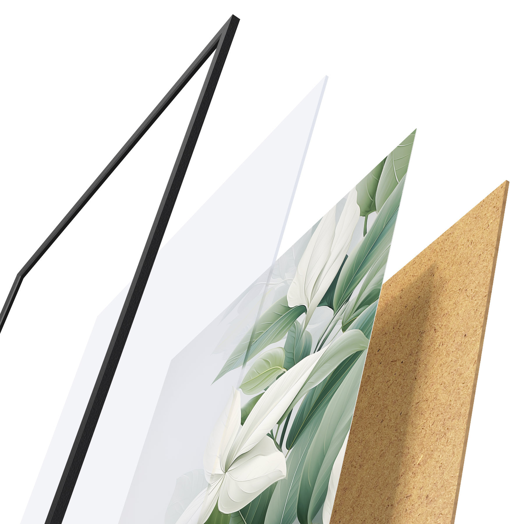 Plakatą sudaro rėmas, pleksiklas, atspausdintas vaizdas ir medžio drožlių plokštės pagrindas. Plakatą galima iš karto pakabinti ant sienos dėl kitoje pusėje esančių laikiklių.