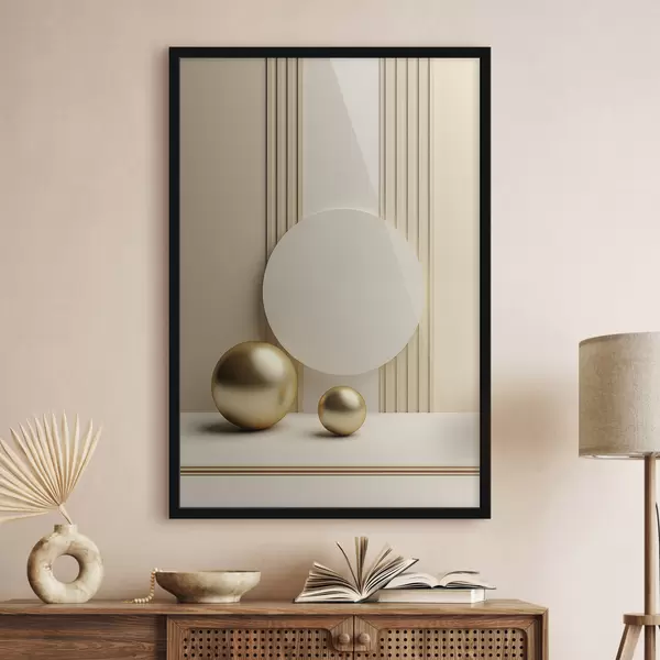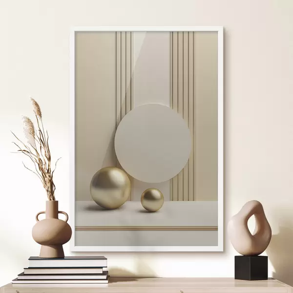 Plakatas Abstraktus smėlio spalvos modernusis menas su vertikaliomis linijomis ir sferomis f47872