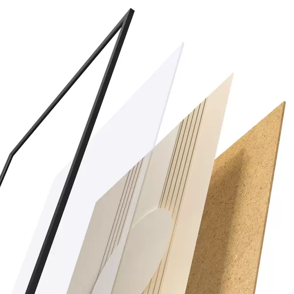 Plakatą sudaro rėmas, pleksiklas, atspausdintas vaizdas ir medžio drožlių plokštės pagrindas. Plakatą galima iš karto pakabinti ant sienos dėl kitoje pusėje esančių laikiklių.