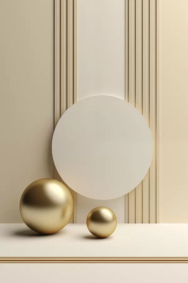 Plakatas Abstraktus smėlio spalvos modernusis menas su vertikaliomis linijomis ir sferomis f47872