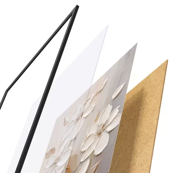 Plakatą sudaro rėmas, pleksiklas, atspausdintas vaizdas ir medžio drožlių plokštės pagrindas. Plakatą galima iš karto pakabinti ant sienos dėl kitoje pusėje esančių laikiklių.